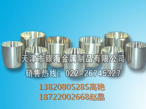 天津市銀海金屬制品有限公司主要生產(chǎn)加工鉑金坩堝、鉑金皿、黃鉑合金異形坩堝、鉑金絲、黃金坩堝、銀坩堝、銀燒杯、鐵坩堝、鎳坩堝、包鉑坩堝鉗子、瑪瑙研缽、純銀絲、純銀片、銀粉、剛玉坩堝等金屬制品,我公司的生產(chǎn)工藝嚴(yán)謹(jǐn)、技術(shù)先進(jìn)、經(jīng)驗(yàn)豐富,產(chǎn)品銷往全國(guó)各地。 公司承諾:保證產(chǎn)品價(jià)格優(yōu)惠、質(zhì)量可靠,熱情周到的服務(wù),歡迎廣大新老客戶選購(gòu)我公司產(chǎn)品。